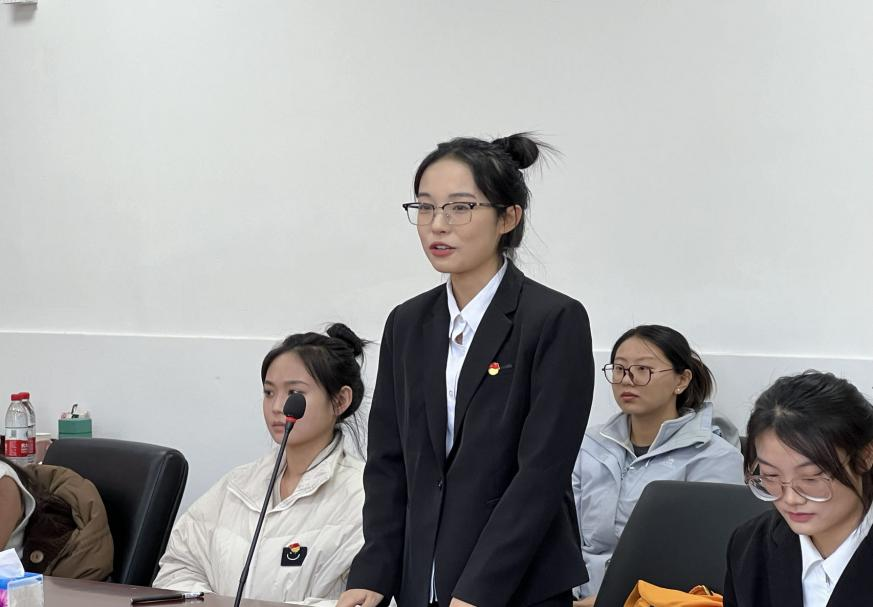 学院党委书记孙冬梅首先代表学院党委祝贺两位同志按期转正。她指出,支部党员大会是提高党性修养的重要载体。此次大会程序规范、严肃活泼,体现了2023级硕士生党支部全体成员良好的政治素养。希望2023级硕士生党支部全体党员在今后的工作中能够更加严格要求自己,更好地在学习、生活、工作等方面起到表率作用。