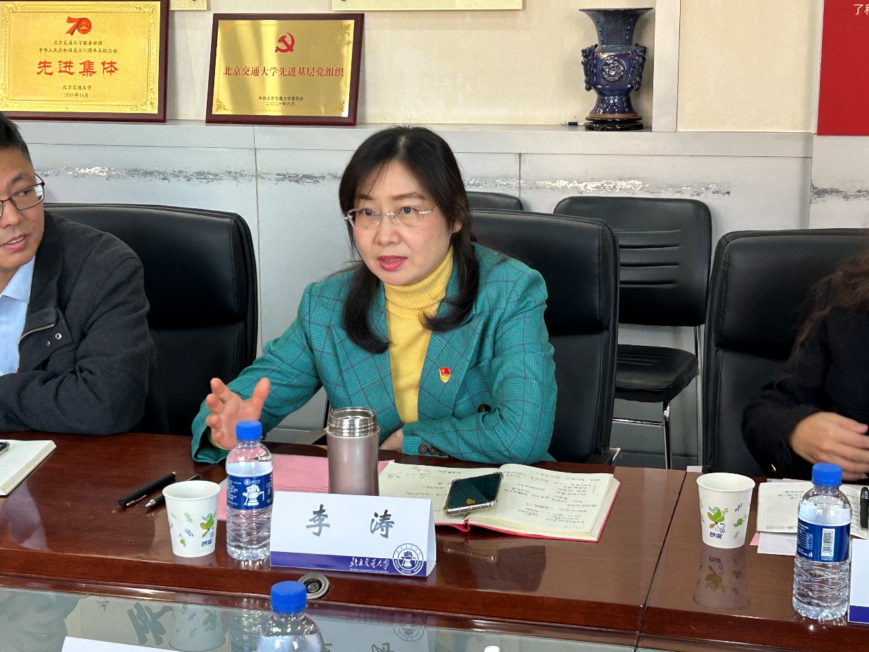 孙冬梅表示交通运输学院在党建工作中有很深厚的工作基础和优秀成绩,此次学院共建是积极贯彻落实学校党建工作的重要举措,希望通过此次活动能够加强沟通交流,充分将专业特色与学校思政元素深度融合,全方位加强思政课的内涵质量建设,形成高质量且具有交大特色的党建系列品牌。