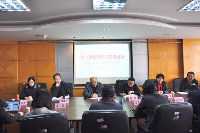 2021年3月5日上午9:00,玩球直播 与远程与继续教育学院在思西712会议室围绕线上思想政治理论课建设问题召开研讨会。远程与继续教育学院院长司银涛、副院长董俊,玩球直播 院长高正礼、副院长田永静,远程与继续教育学院教学服务中心、技术部相关负责人,玩球直播 各教研室主任、教学科相关人员参加了本次研讨会。