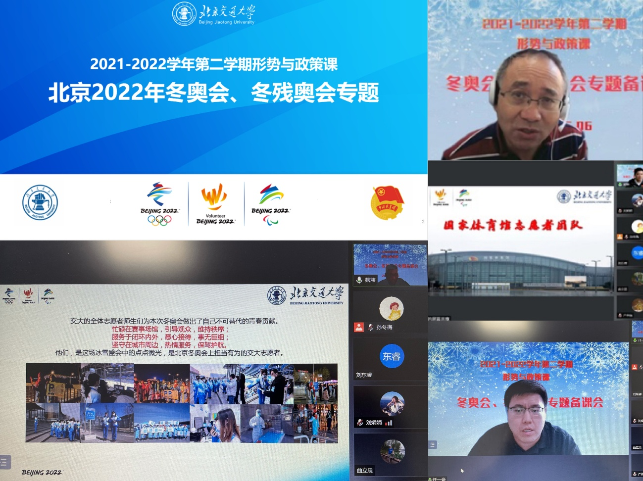 为深入学习贯彻习近平新时代中国特色社会主义思想,办好新时代大学生“形势与政策”课,不断提升我校“形势与政策”课教学质量,帮助学生正确认识新时代国内外形势,玩球直播 近期陆续开展“形势与政策”课集体备课工作。2022年5月6日下午,校长王稼琼参加“北京2022年冬奥会、冬残奥会”专题教研组线上集体备课。