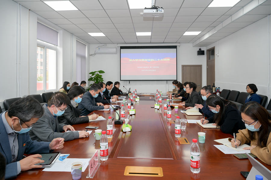 2022年10月28日下午,学校举行形势与政策课“党的二十大精神”专题教研组集体备课会,深入学习宣传贯彻党的二十大精神,进一步推动习近平新时代中国特色社会主义思想“三进”工作。校长王稼琼,党委副书记、纪委书记郭海,党委副书记文海涛,副校长赵鹏,党委常委、党委组织部部长兼党委统战部部长史贞军与玩球直播 领导班子成员、专题教研组任课教师、各教研部负责人一起集体备课。玩球直播 党委书记孙冬梅主持备课会。