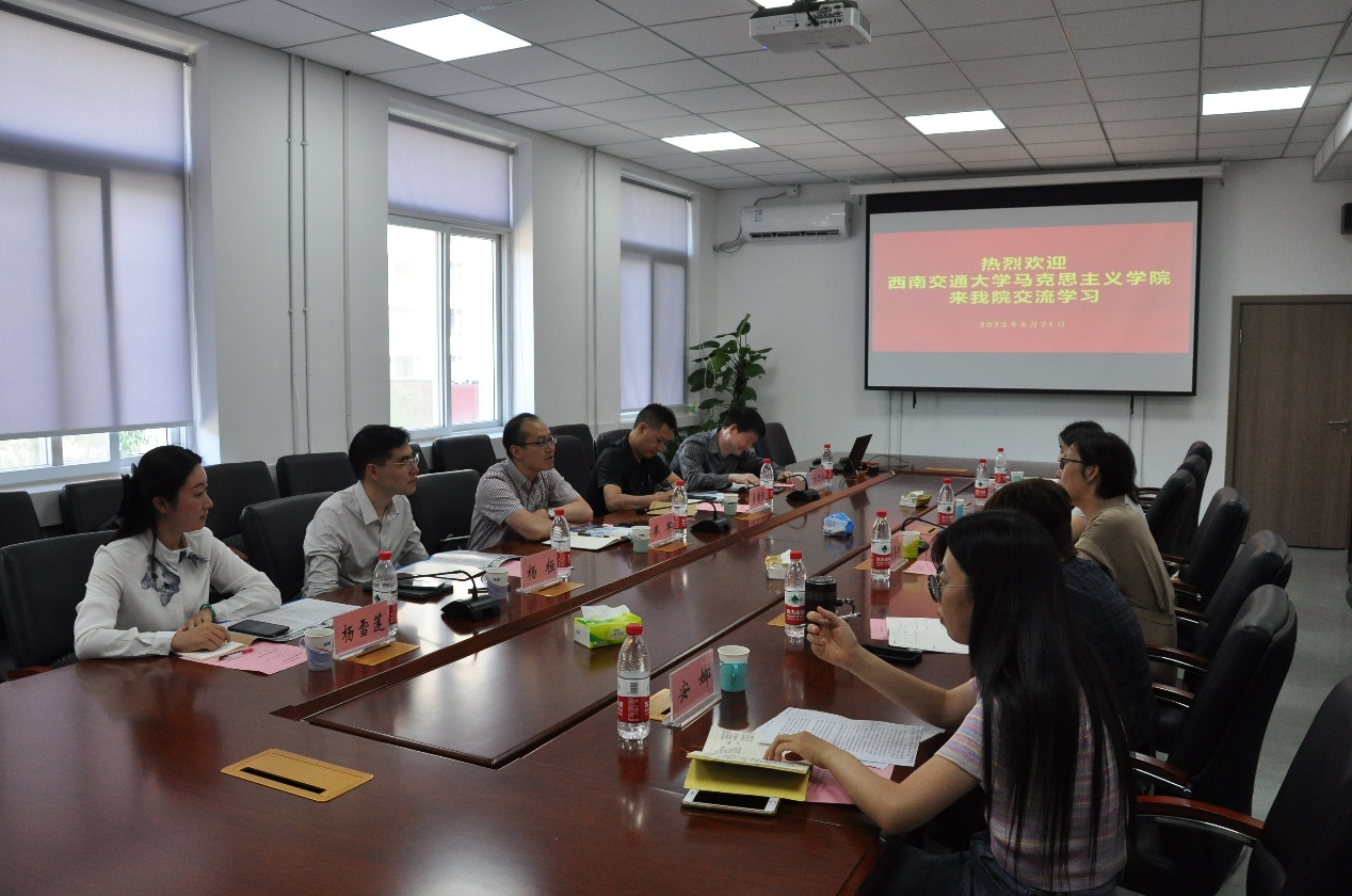 孙冬梅首先代表学院对西南交通大学一行的到来表示热烈欢迎,并向到访的同仁简要介绍了主题教育的开展情况。随后从党建与思想教育、思政课建设、人才培养、学科建设与科研四个方面介绍信了学院的基本情况。她表示两所学校同根同源,希望能够以此次交流为契机,进一步加强往来,在互动交流中学习借鉴,共同实现高质量发展。
