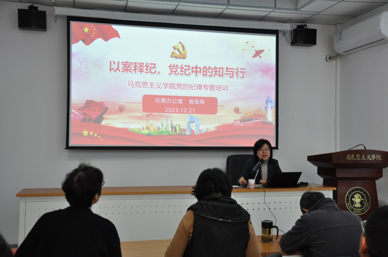 翁良殊结合近年来高校发生的典型案例对党的六大纪律进行了详细阐释,围绕落实中央八项规定精神对与广大教职工学习工作生活密切相关的制度要求予以解读和提醒,对新出台的教职工党支部纪检委员履职办法进行宣传释义,希望教职工不断增强纪法意识,知敬畏、存戒惧、守底线,使遵规守纪成为日常习惯和自觉遵循。