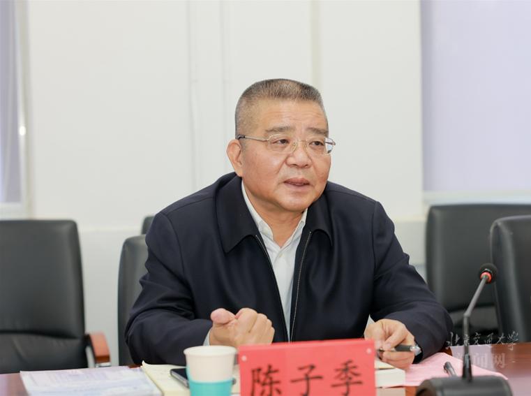 11月21日,校党委书记陈子季到玩球直播 参加“习近平新时代中国特色社会主义思想概论”课程集体备课会并参与研讨。党委副书记文海涛、姚念龙,党委常委、宣传部长兼统战部长蓝晓霞参加备课会。