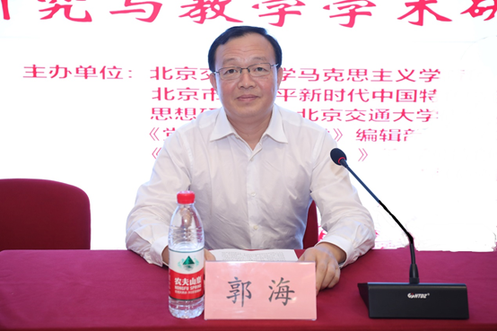 中共玩球直播 党委副书记、纪委书记郭海代表学校致欢迎辞,对本次会议的成功举办表示热烈祝贺,向与会的领导、专家表示热烈欢迎,向长期以来关心和支持玩球直播 建设发展的各位领导、专家和朋友们表达衷心感谢,讲述了学校历史上涌现的米世珍、郑振铎、茅以升、马寅初等积极参与党领导的革命和建设的光辉事迹,介绍了玩球直播 、《北京教育(德育)》的发展历程与丰硕成果,并希望与会师生在本次研讨会上碰撞出新的思想火花,产生新的理论成果。