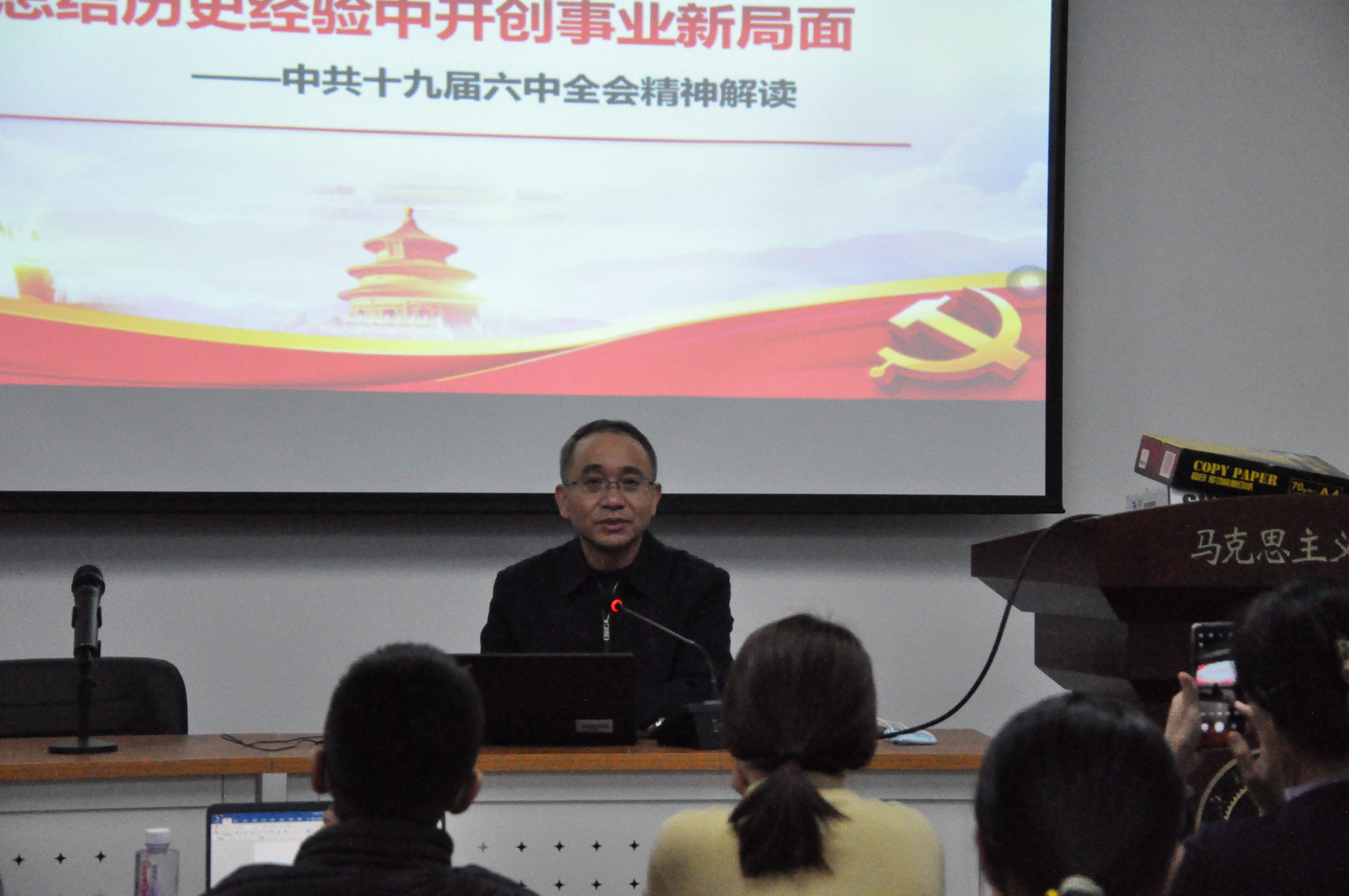 本次报告站位高,视野宽,系统全面,权威准确,思想深刻,见解独到,具有很强的针对性和感染力,既体现了历史纵深,也体现了理论高度和实践深度,是对深刻理解和准确把握党的十九届六中全会精神的一次全方位辅导,为学院师生深入学习宣传和研究十九届六中全会精神提供了重要的理论与方法论借鉴。