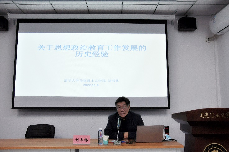为涵养马院优良学风,培养学生学术兴趣,2022年11月5日晚,玩球直播 传习所系列论坛第七讲成功举办,清华大学玩球直播 二级教授刘书林应邀作题为《关于思想政治教育工作发展的历史经验》的学术报告。