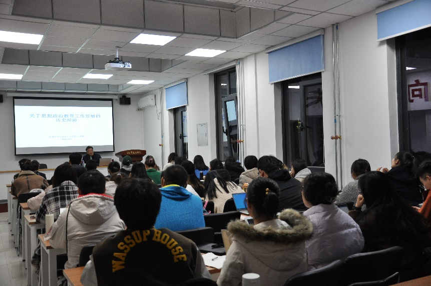 整场讲座刘书林教授深入浅出,引经据典,妙语连珠,从历史到现实、从理论到实践,全面深刻地讲述了党的思想政治教育工作历史经验,加深了学生们对党的思想政治教育工作基本规律和经验的认识与理解,激发了学生们对马克思主义理论的学习热忱,为学生们提供了从事学术研究的方法借鉴。